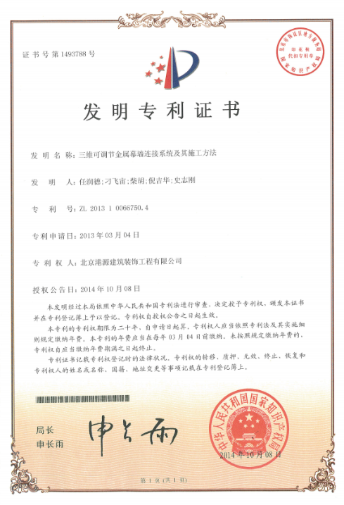 發(fā)明專(zhuān)利-三維可調節金屬幕墻連接系統及其施工方法