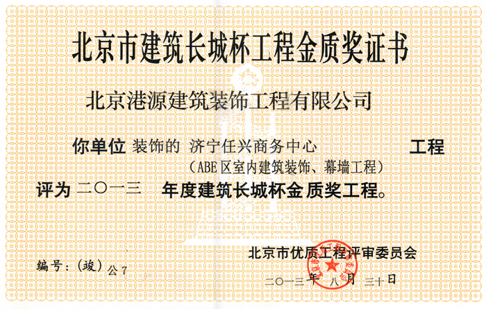 北京市建筑長(cháng)城杯金質(zhì)獎