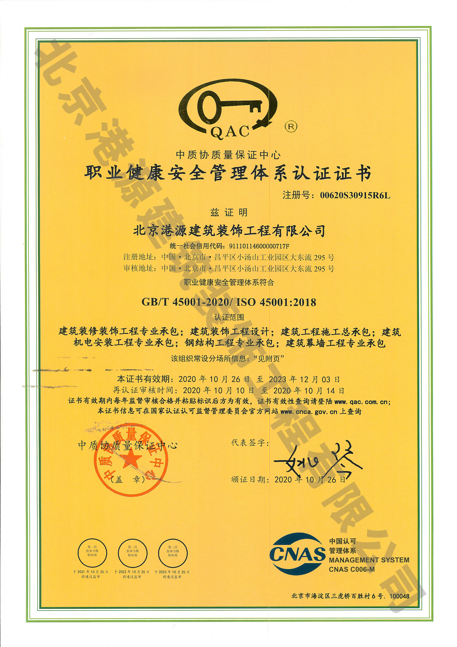 職業(yè)健康安全管理體系認證證書(shū)