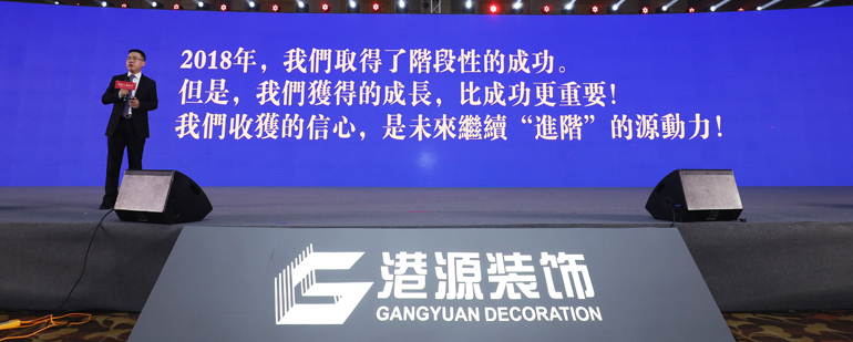 “2018年,港源裝飾實(shí)現了V型反轉,取得了階段性的成功。但是,我們所獲得的成長(cháng),比成功更重要;我們所收獲的信心,更是港源裝飾在2019年繼續“進(jìn)階”的源動(dòng)力!”