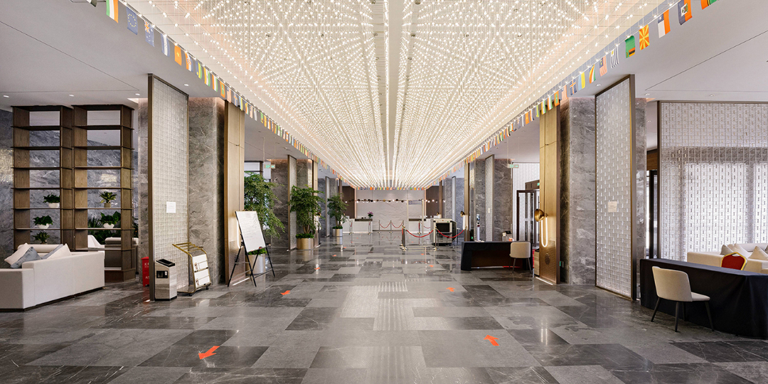 洛陽(yáng)伊水迎賓館是洛陽(yáng)市重點(diǎn)項目,由港源裝飾參建的項目一期建筑面積8.8萬(wàn)平方米,建筑包括具有接待國際會(huì )議標準的五星級酒店、國際會(huì )議中心、多功能會(huì )議廳、貴賓樓以及配套建筑等。